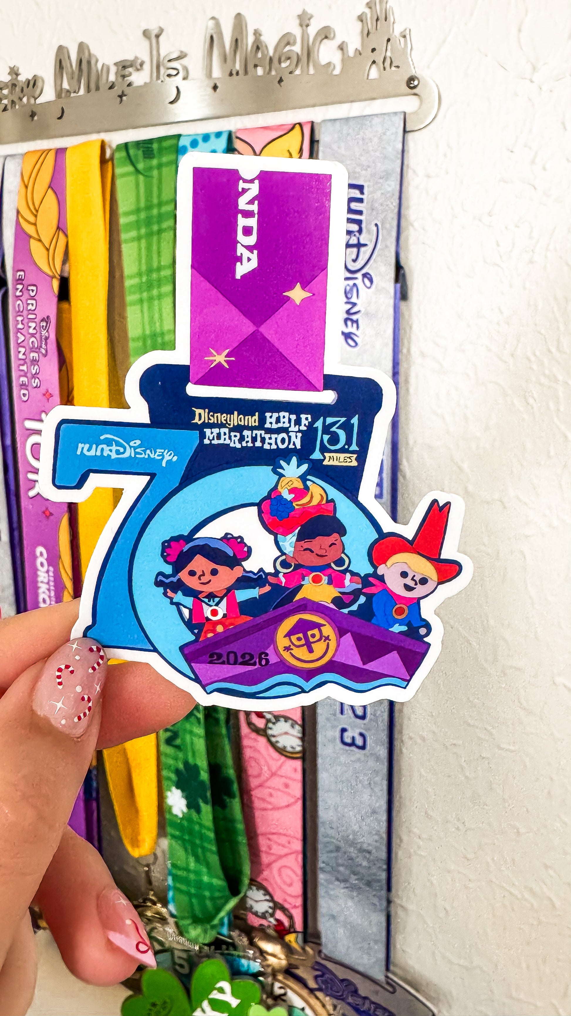 Did you spend your weekend running through the parks or want your own version of the medals? Show off your RunDisney Medal all the time without having to wear the medal! Hand drawn by the owner, this sticker is part of the Disneyland 2026 Half Marathon Weekend.
