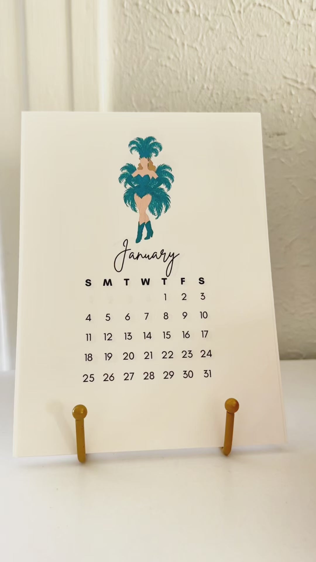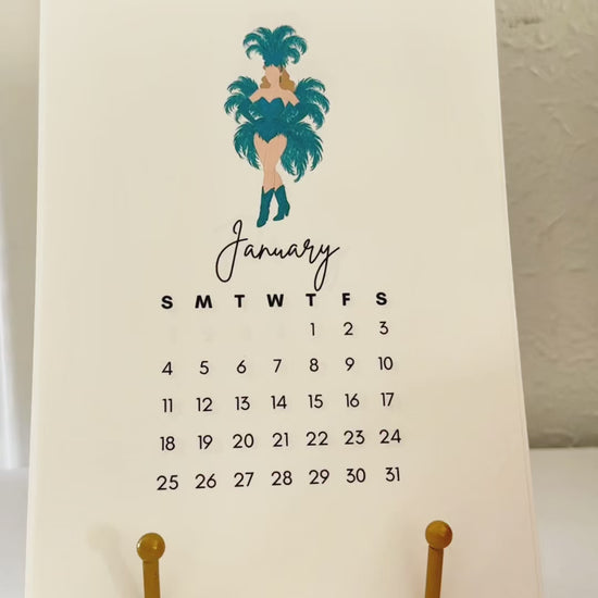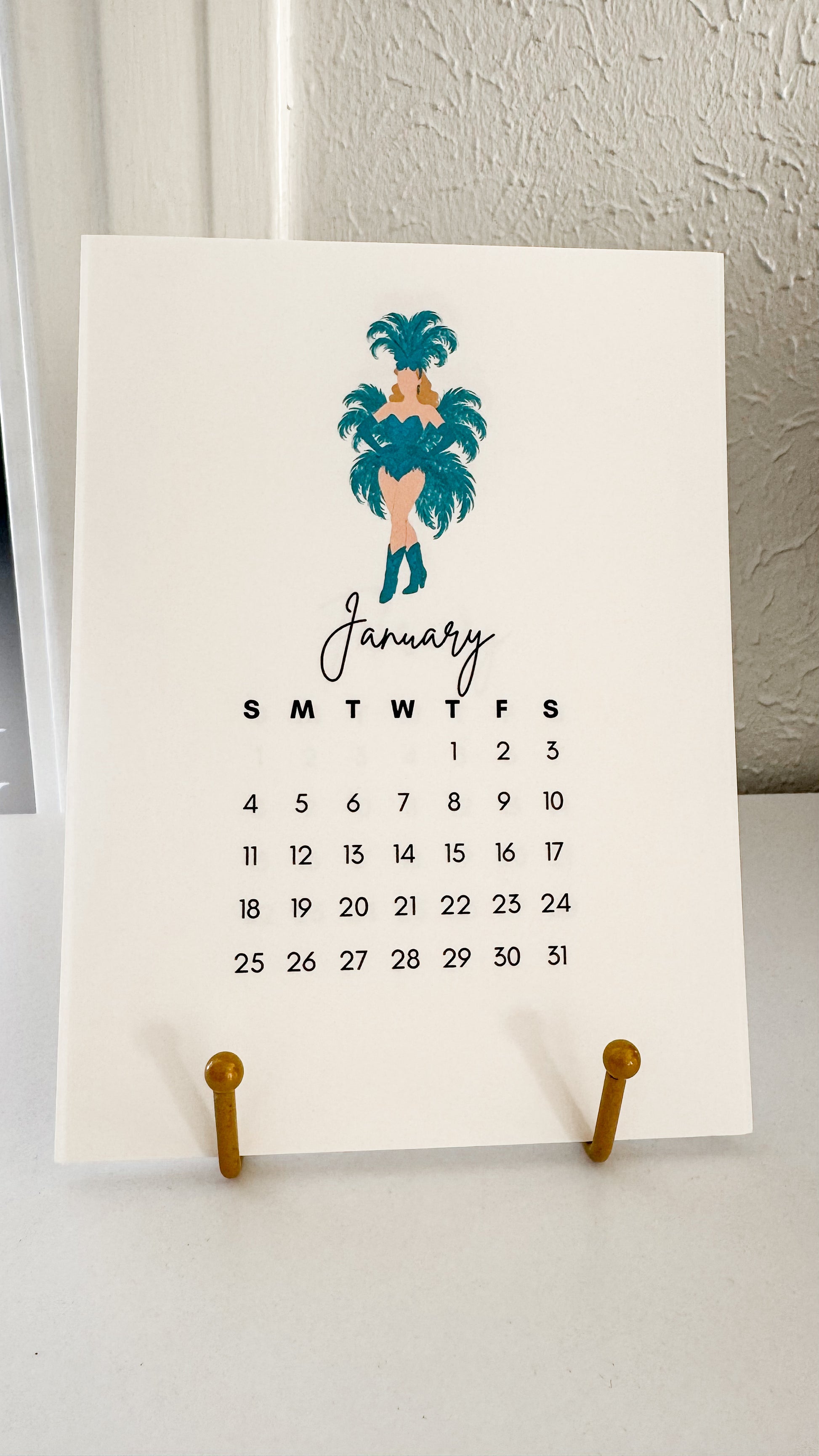 Celebrate the new era with this desk calendar that features each era in their showgirl attire!