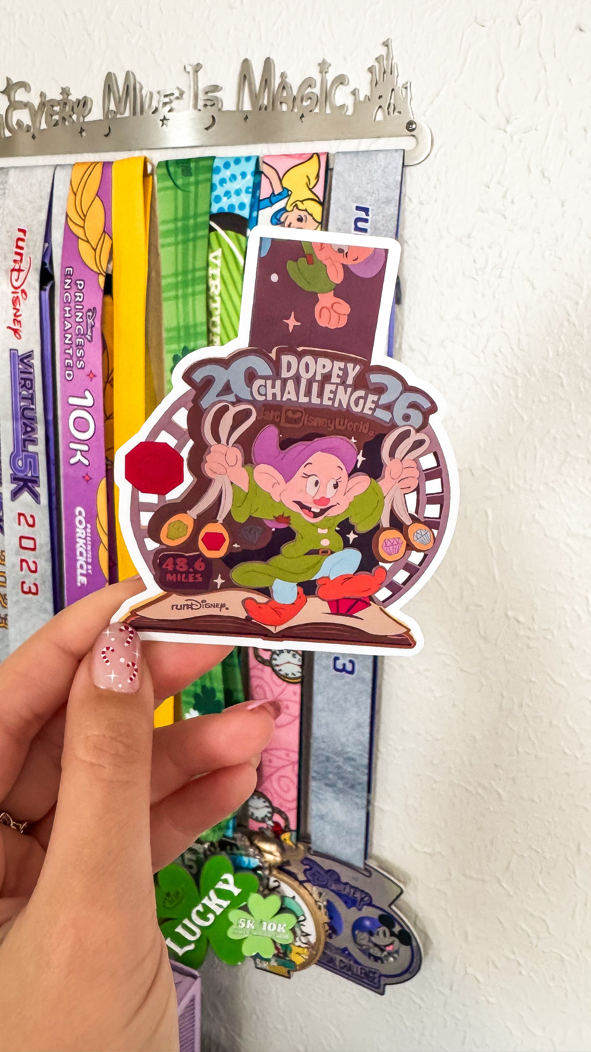 Did you spend your weekend running through the parks or want your own version of the medals? Show off your RunDisney Medal all the time without having to wear the medal! Hand drawn by the owner, this sticker is part of the Disney World 2026 Marathon Weekend.